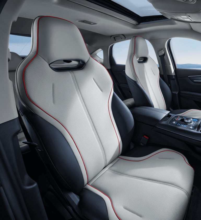 Oddiy konturlar boshqaruv panelidan ikkala yo'nalishda ham cho'ziladi. O'rnatilgan premium o'rindiqlar hashamatli sport avtomobili muhitini yaratadi.