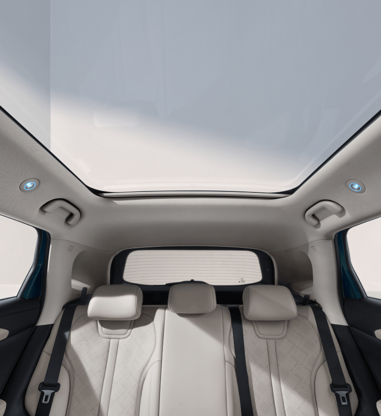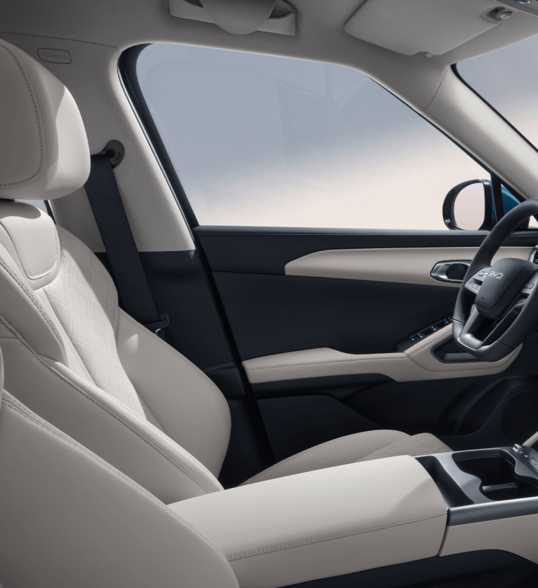 YUAN UP DM-i ning yangi saloni yumshoq vegan charmdan ishlangan o'rindiqlar va salon yoritgichlari bilan jihozlangan bo'lib, yuqori sifat hissini kuchaytiradi. Panoramali tom esa yorug', keng va sokin muhit yaratadi.